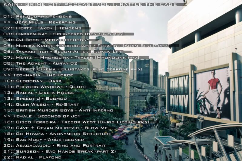 My very 1st techno podcast from Grime City aka Bangkok, this is a new concept series showcasing the best of proper banging techno, so if you're looking for any pseudo-intelligent minimal crap may I kindly suggest you to fuck off. VOL.1 is a full on non-stop attack set, expect more hypnotic explorations in the future. Check the pic 4 tracklisting.